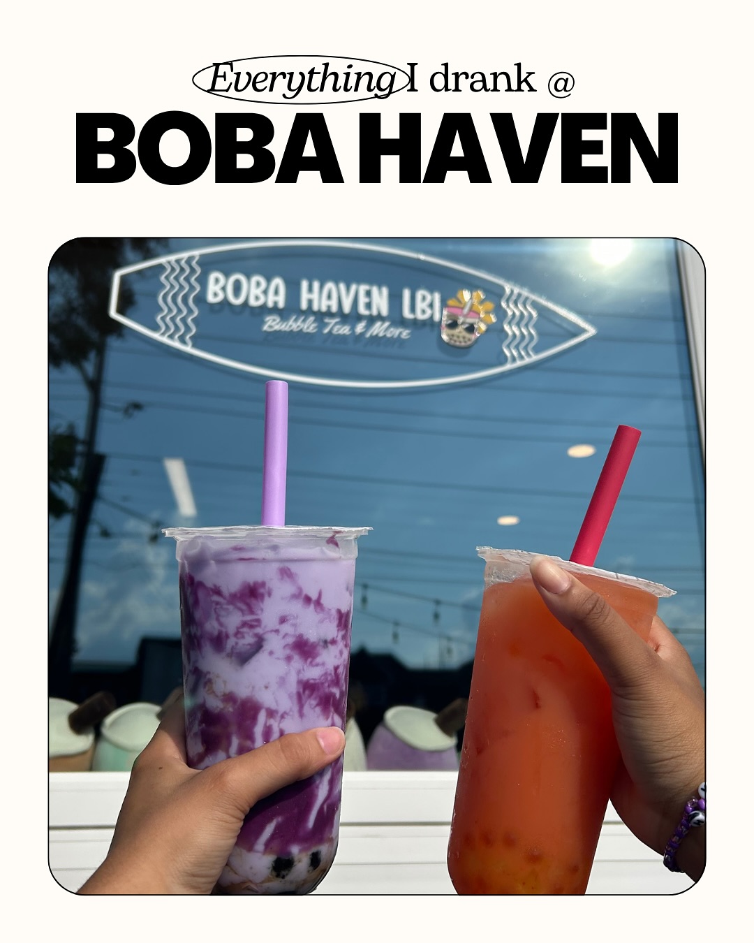 Boba Haven LBI is quickly becoming a must-visit spot on the island!!!!!!!! The atmosphere is inviting and vibrant, making it the perfect place to unwind or catch up with friends. ... the drinks are consistently impressive, and the staff is warm and welcoming. Whether you're a local or just passing through, make sure to stop by before the summer rush. You won't want to miss out on this delightful spot! We are definitely gonna be back!!!!!!